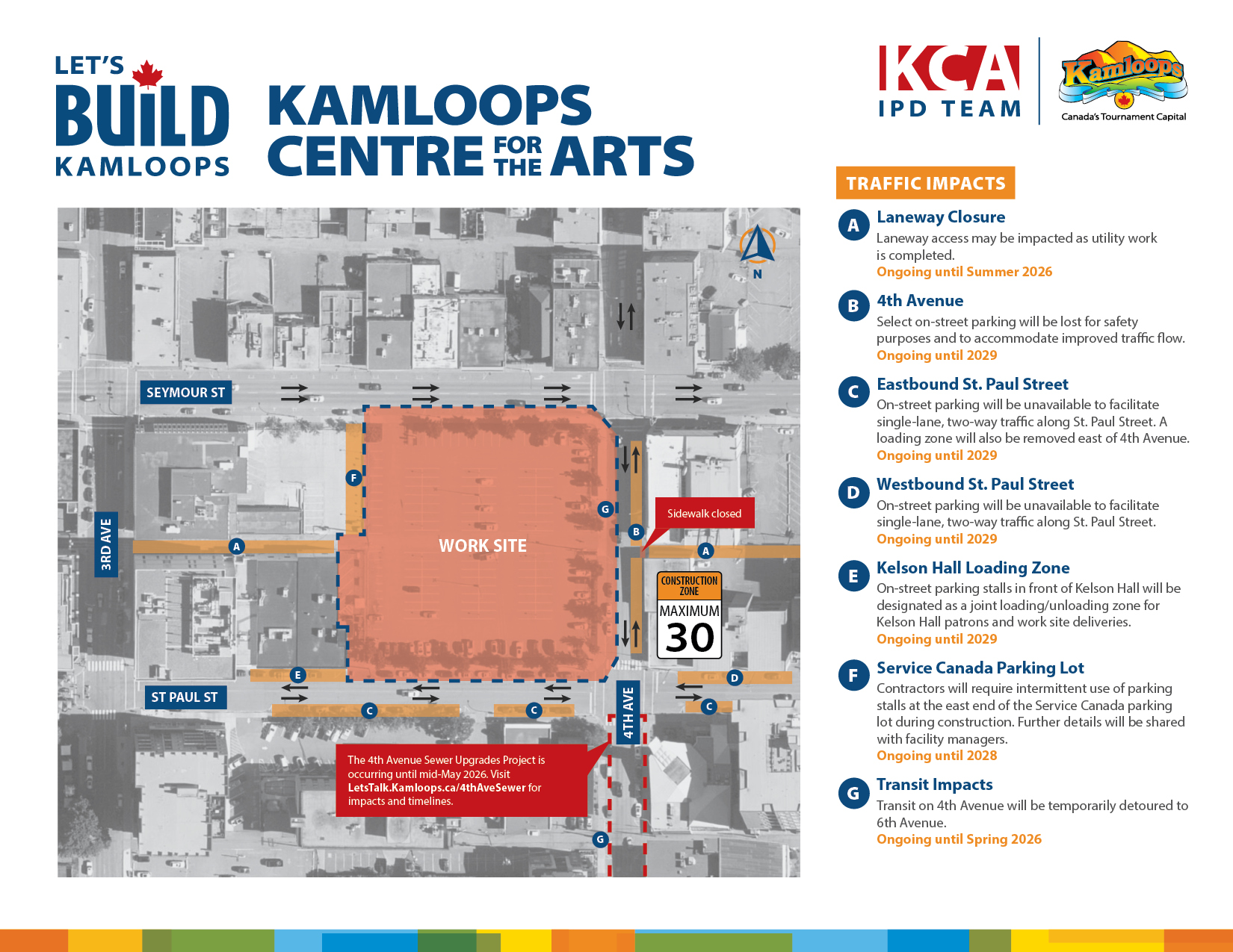 Additional short-term impacts will occur in the area of 4th Avenue from Seymour Street to Battle Street as part of the 4th Avenue Sewer Upgrades Project. Please visit the project page for further details.