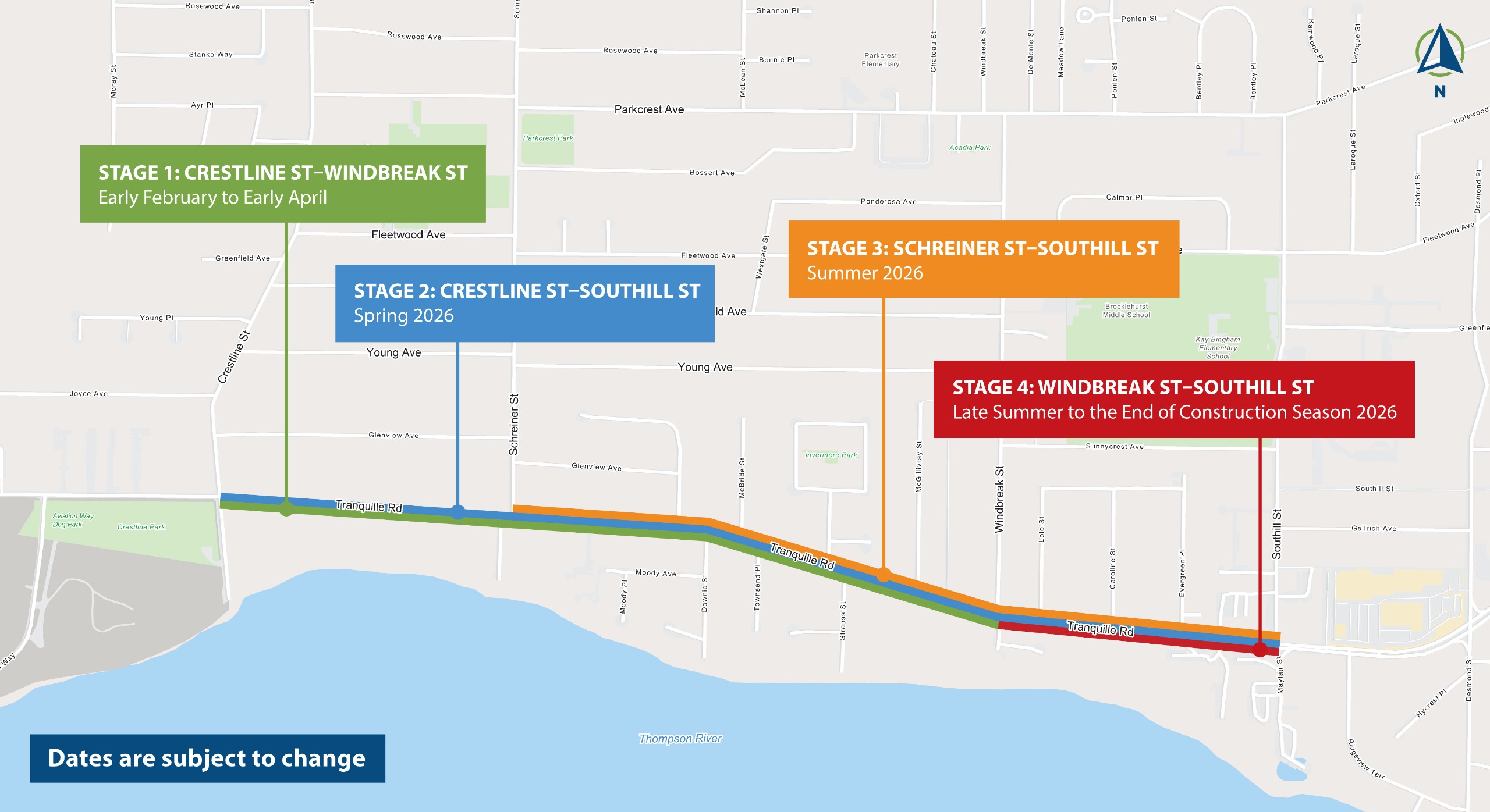 During the work, Tranquille Road will be open to local traffic only for driveway access, however, no thru traffic will be permitted.