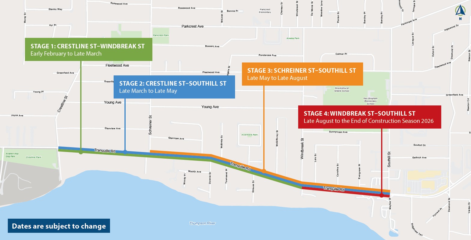 - Stage 1: Crestline Street to Windbreak Street | Beginning February 2, 2026